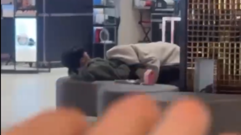 某商场大厅公共休息区惊现情侣现场👄交路人解说激情四射